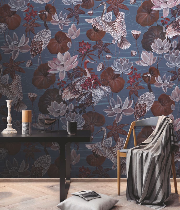 Estampa = Animal | Painel | Pássaro | Folhas | Folha | Rio | Agua | Flor | Flores | Flamingo