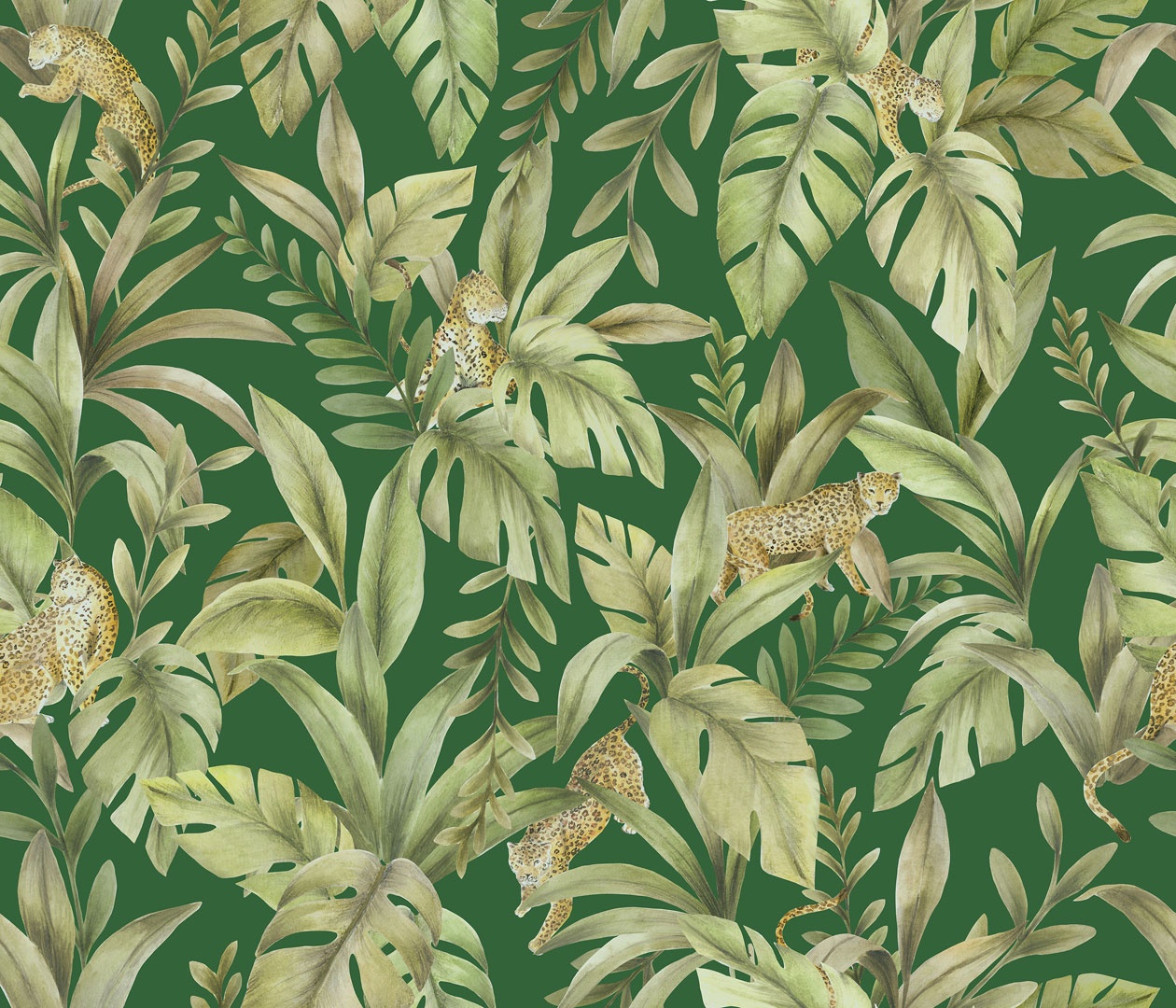 Estampa = Onça | Painel | Folhas | Folhagem | Animal