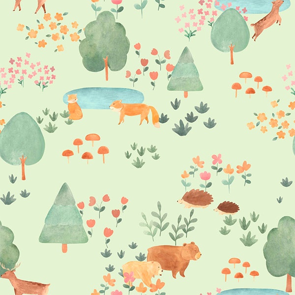Estampa = Raposa | Árvore | Flor | Urso | Infantil | Cogumelo | Lago | Agua | Porco Espinho | Veado