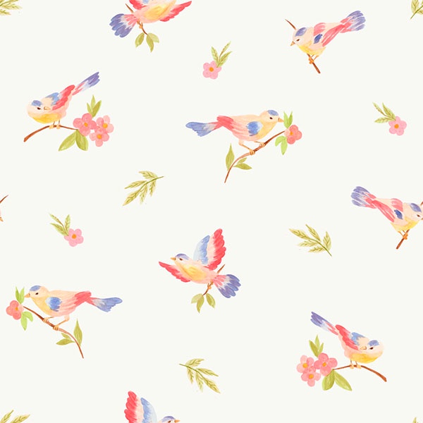 Estampa = Pássaro | Infantil | Flor | Folhas e Flores | Flores | Folha