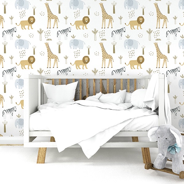 Estampa = Leão | Girafa | Elefante | Zebra | Árvore