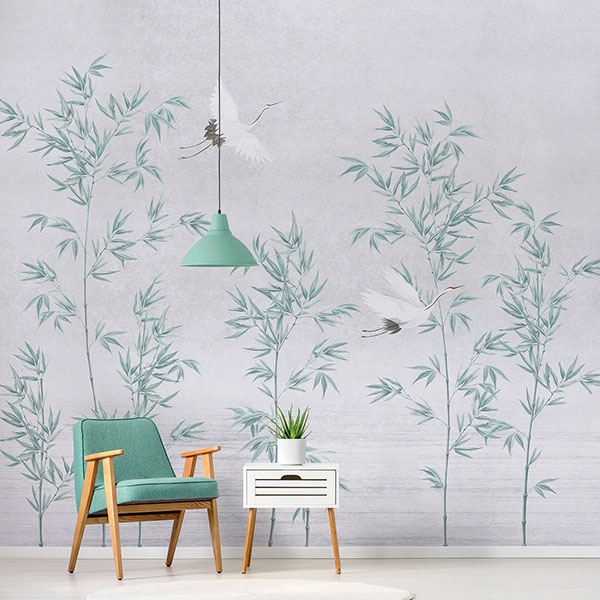 Estampa = Bambu | Garça | Pássaro | Céu