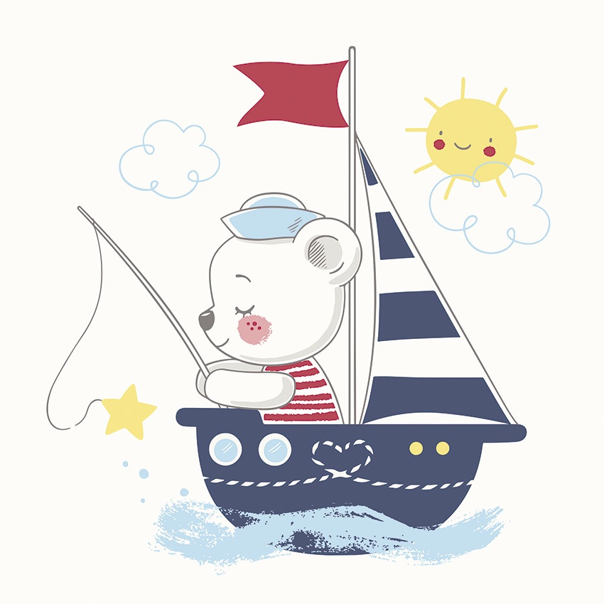 Estampa = Urso | Barco | Vela | Sol | Nuvem | Bandeira | Vara de Pesca | Estrela | Água | Painel | Pesca