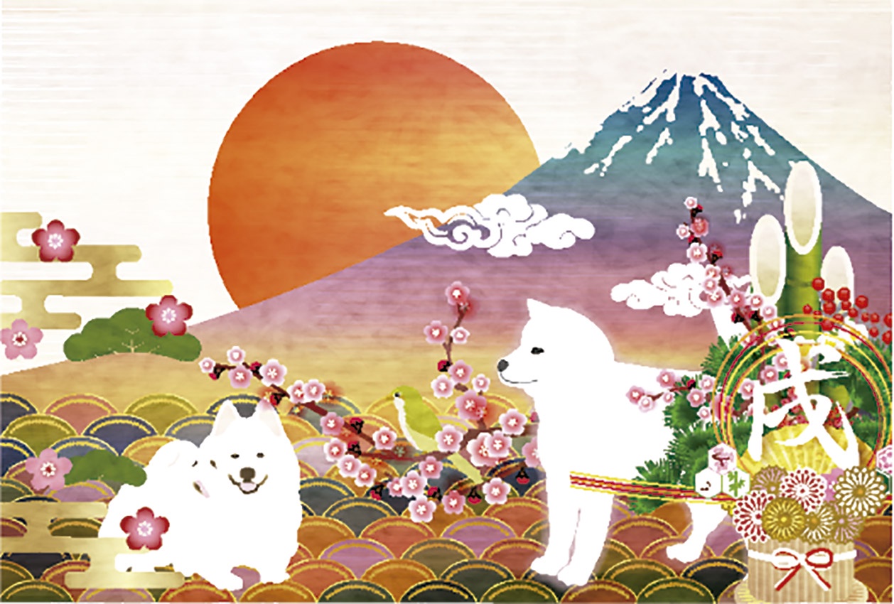 Estampa = Cão | Sol | Montanha | Nuvem | Flor | Pássaro | Bambu | Decoração | Folha | Texto | Painel