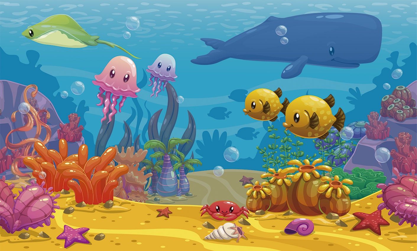 Estampa = Arraia | Baleia | Água Viva | Peixe | Caranguejo | Concha | Estrela-do-mar | Coral | Planta Marinha | Bolha | Painel