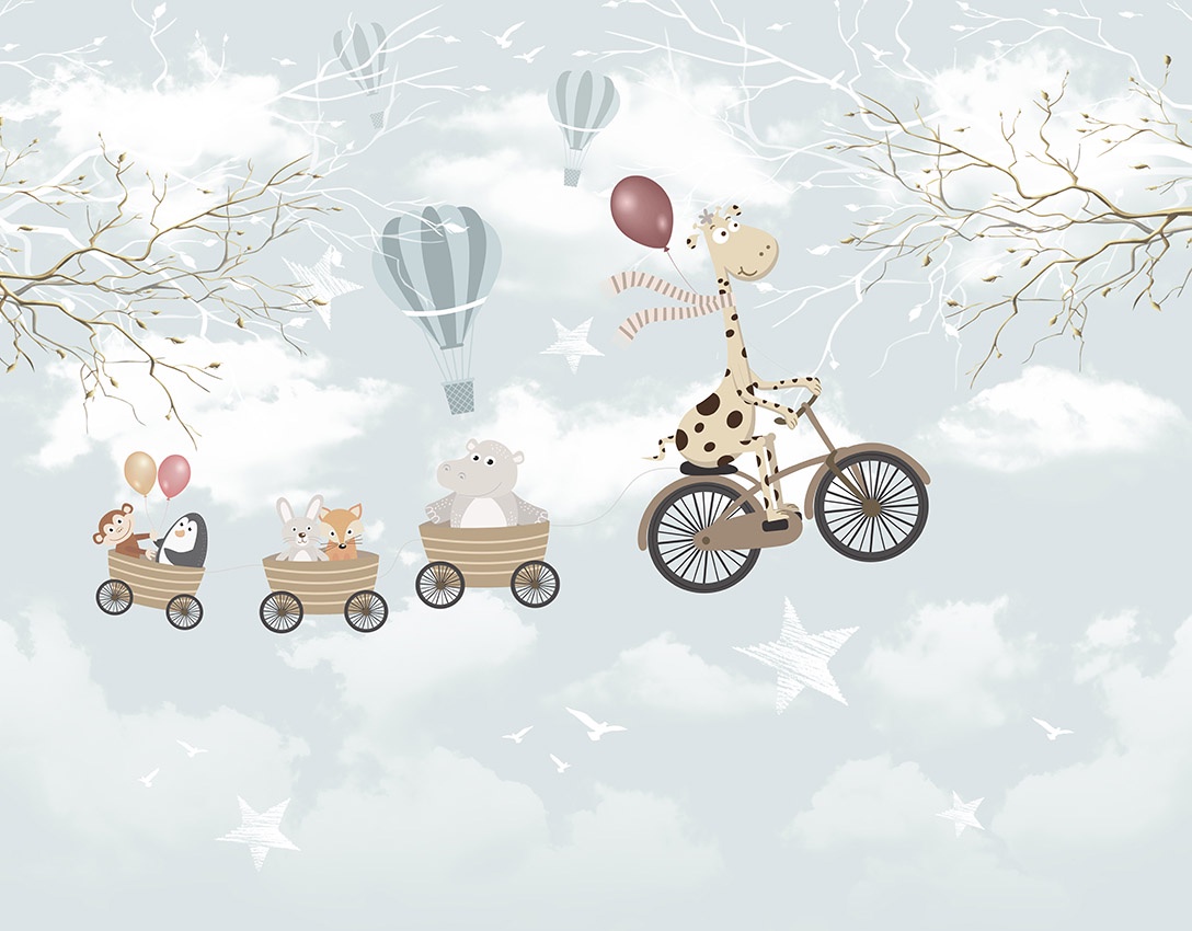 Estampa = Girafa | Bicicleta | Balão | Macaco | Pinguim | Coelho | Hipopótamo | Carrinho | Estrela | Pássaro | Galho | Nuvem | Céu | Painel