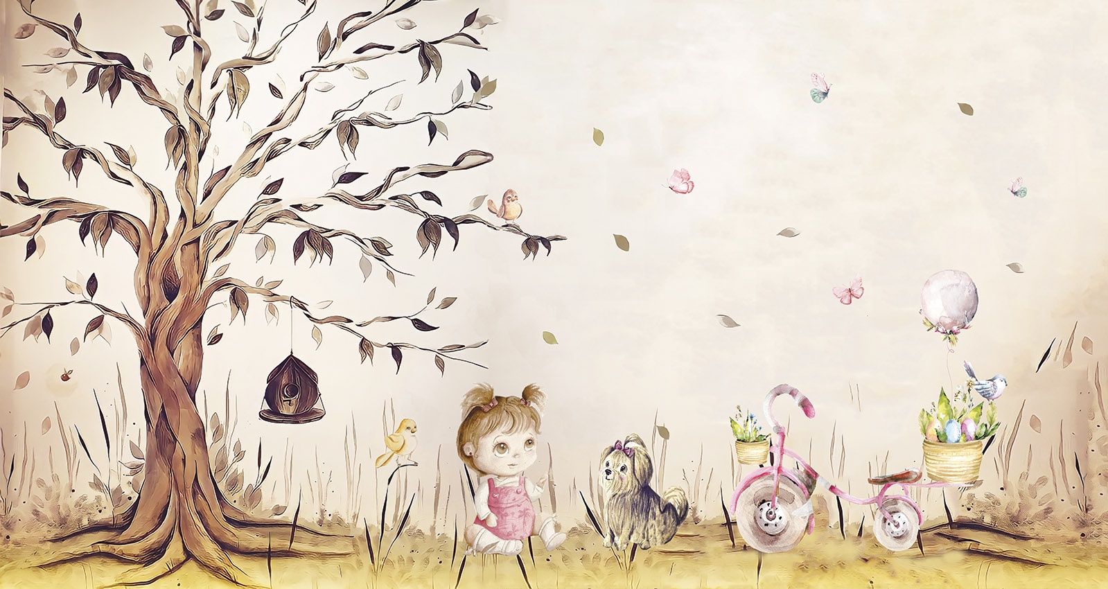 Estampa = Árvore | Boneca | Cachorro | Bicicleta | Pássaro | Borboleta | Casa de Pássaro | Vaso | Planta | Folha | Cesto | Painel | Menina