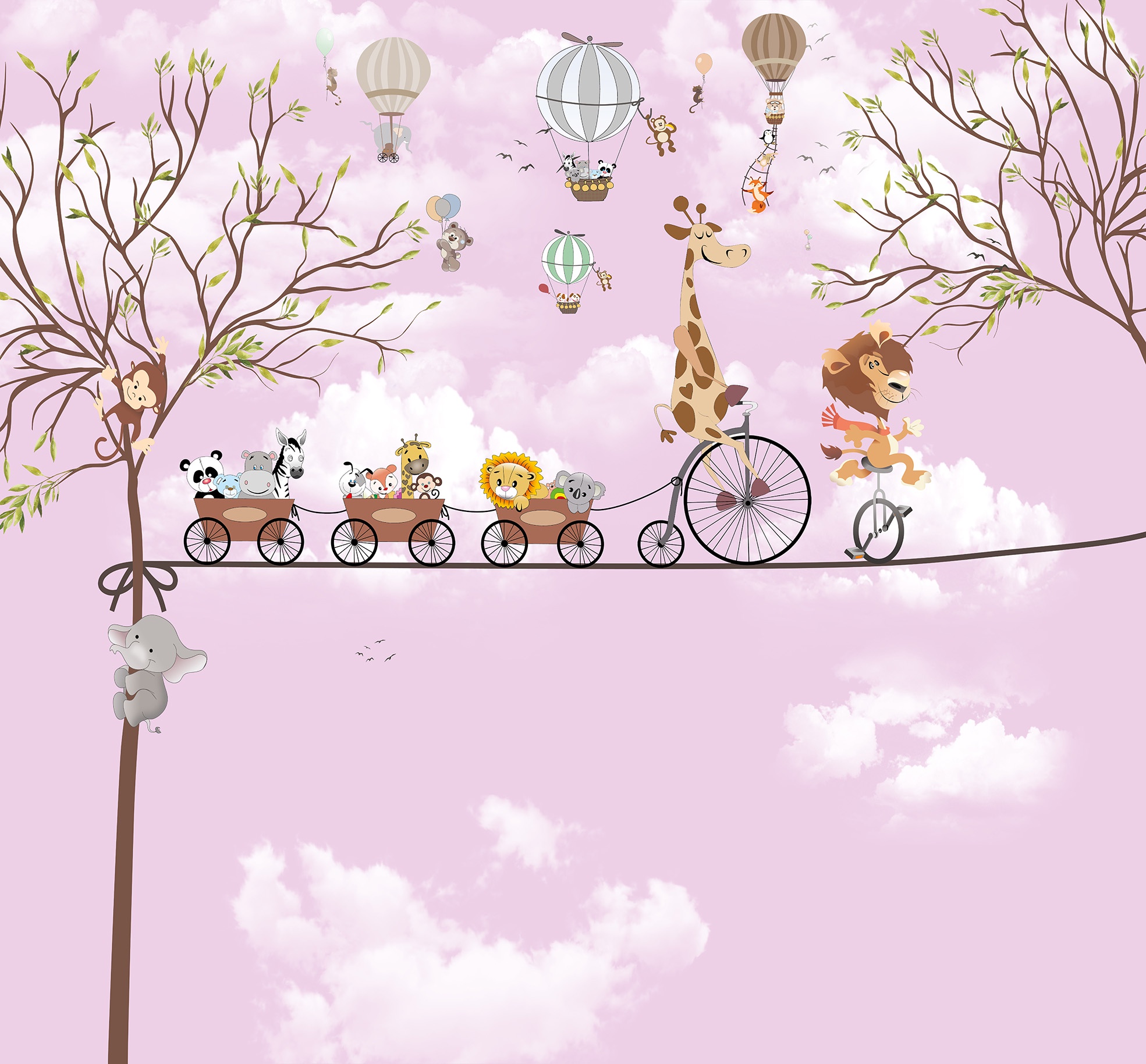 Estampa = Girafa | Leão | Elefante | Macaco | Zebra | Hipopótamo | Cachorro | Pinguim | Panda | Balão | Bicicleta | Monociclo | Trem | Carrinho | Árvore | Galho | Nuvem | Pássaro | Painel