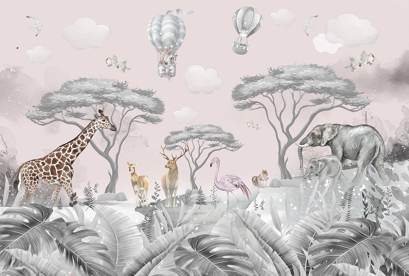 Estampa = Girafa | Veado | Esquilo | Flamingo | Elefante | Filhote de Elefante | Balão | Pássaro | Borboleta | Nuvem | Árvore | Folha | Painel