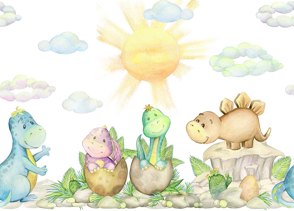 Estampa = Dinossauro | Ovo | Sol | Nuvem | Cacto | Folha | Pedra | Painel