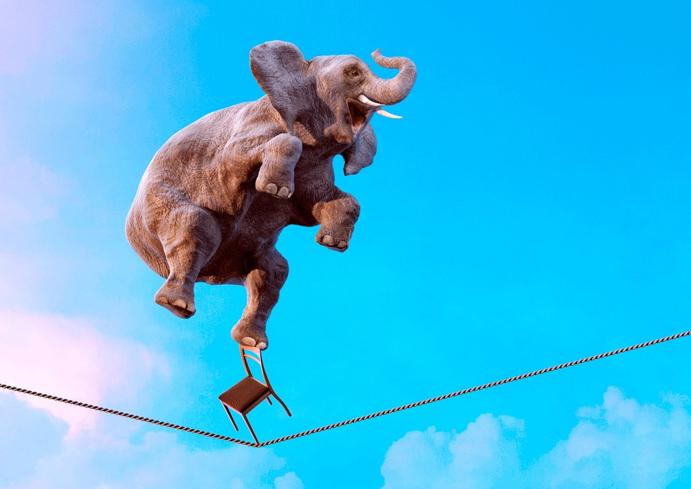 Estampa = Elefante | Cadeira | Corda | Nuvem | Céu | Painel