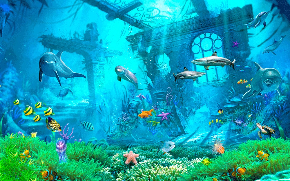 Estampa = Golfinho | Tubarão | Tartaruga | Peixe | Estrela-do-Mar | Água-Viva | Anêmona | Coral | Alga | Ruína | Raio de Sol | Painel