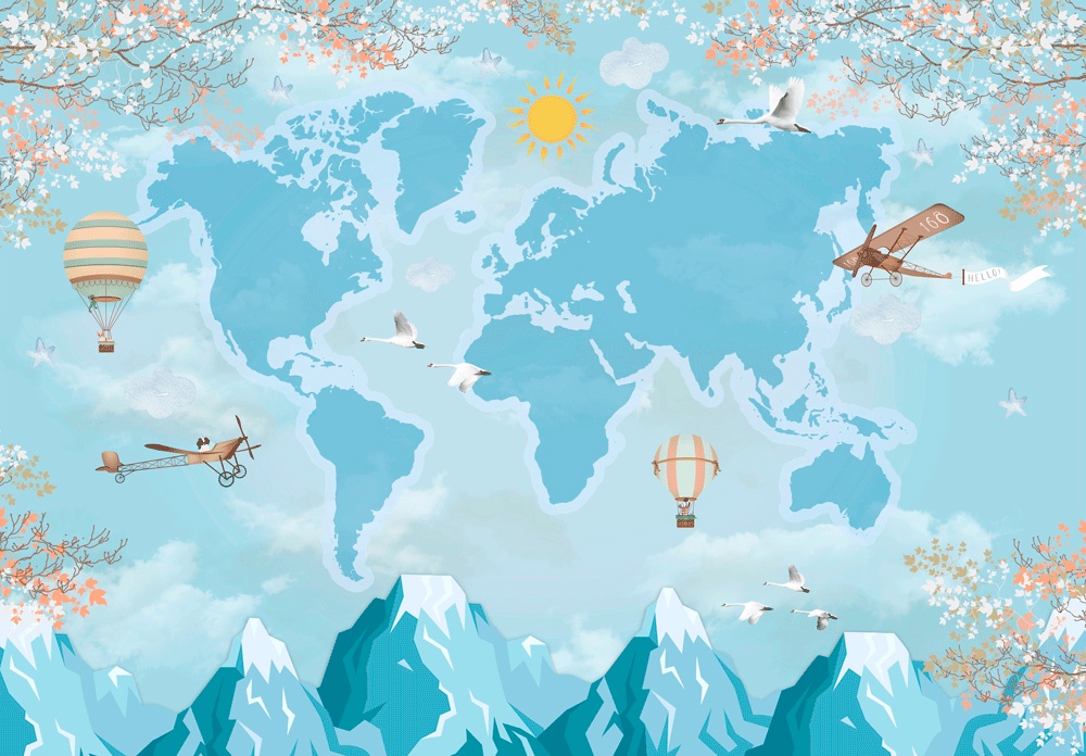Estampa = Mapa | Montanha | Balão | Avião | Cisne | Sol | Estrela | Árvore | Folhagem | Painel