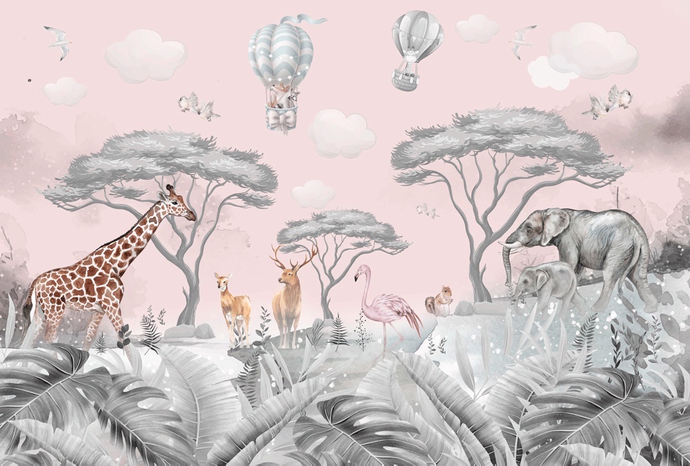 Estampa = Girafa | Elefante | Flamingo | Cervo | Esquilo | Balão | Árvore | Folhagem | Nuvem | Gaivota | Painel