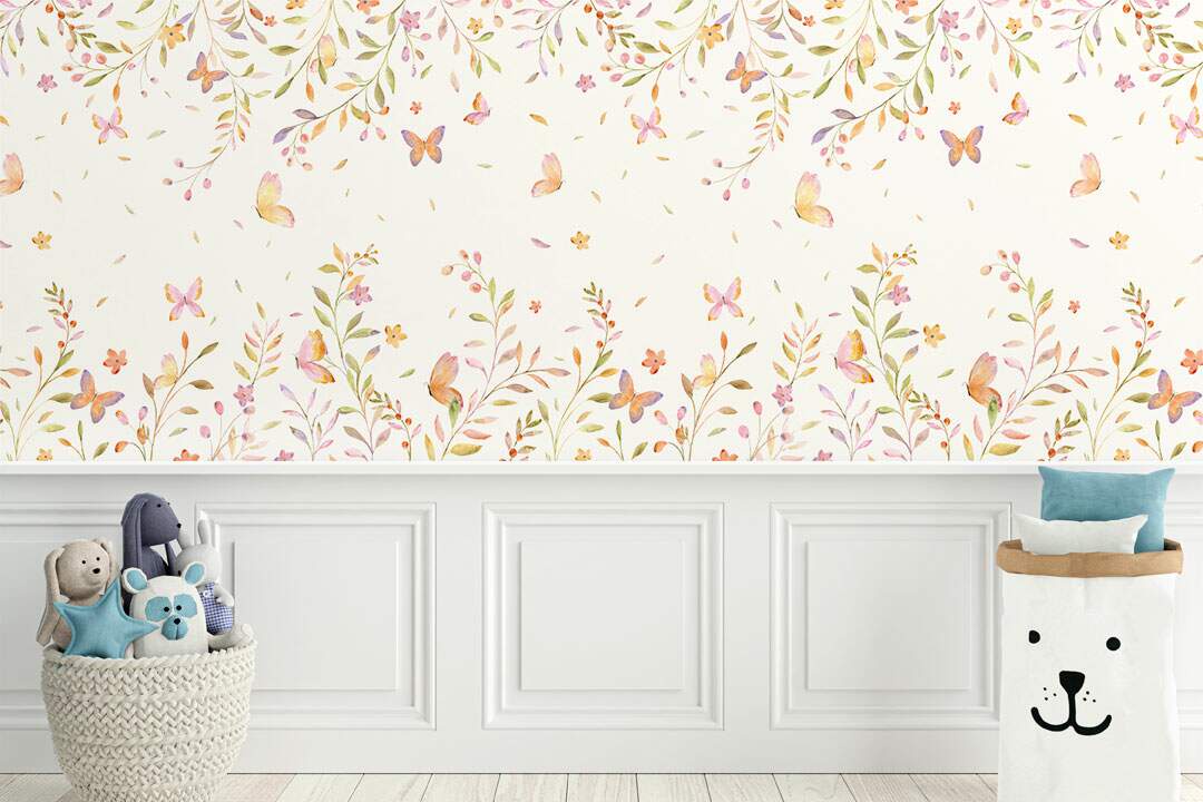 Estampa = Borboleta | Painel | Folhas | Flores | Infantil