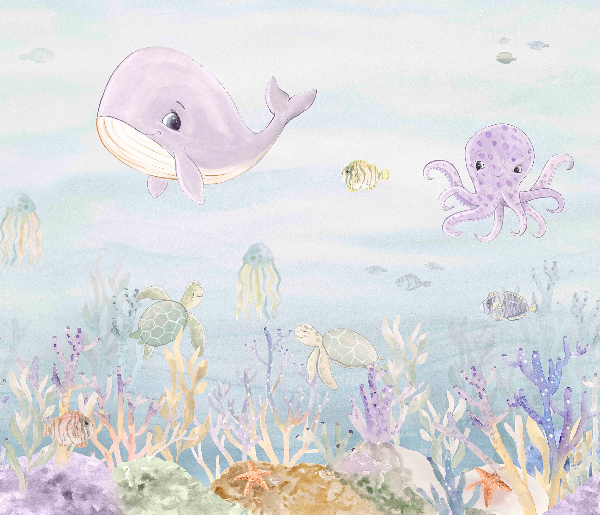 Estampa = Mar | Painel | Baleia | Animal | Polvo | Tartaruga | Peixe | Coral | Alga