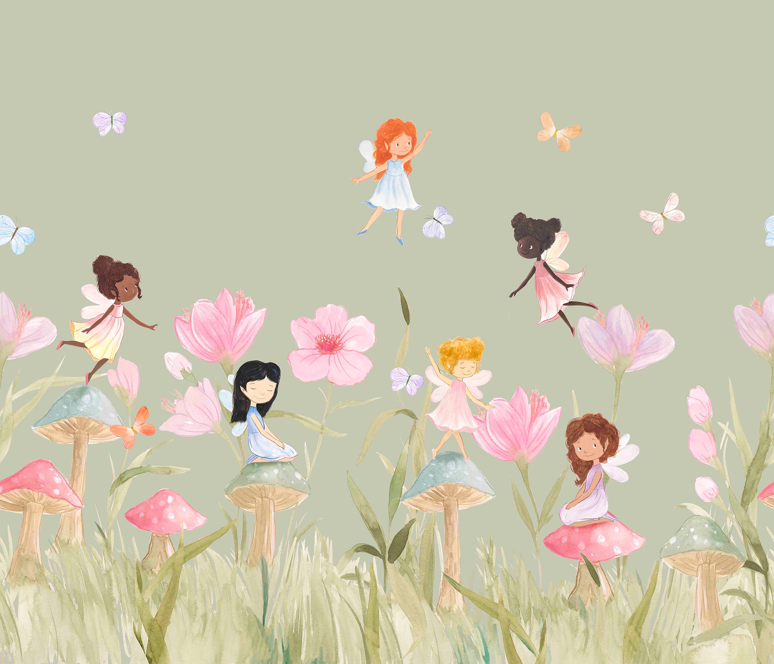 Estampa = Folhas | Flores | Painel | Menina | Fada | Cogumelo | Borboleta | Grama