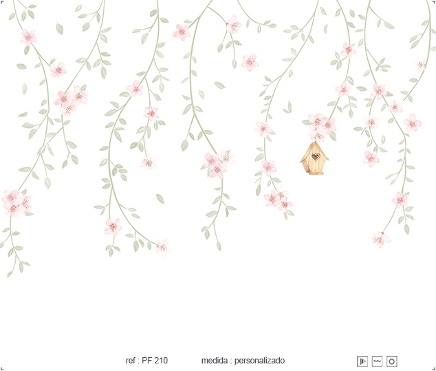 Estampa = Folhas e Flores | Folhas | Flores | Borboleta | Flor | Folha | Casa | Casa de Pássaro | Painel
