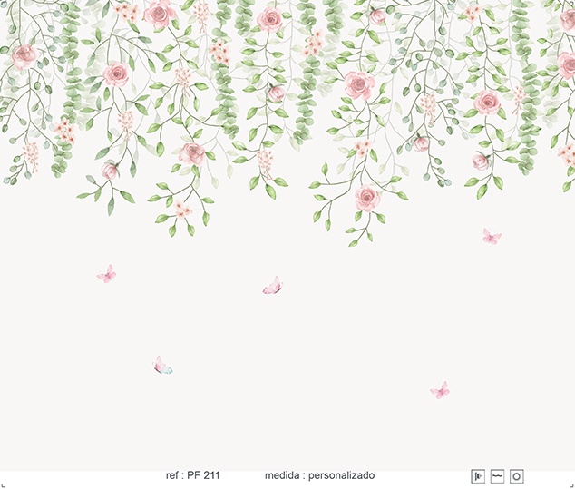 Estampa = Folhas e Flores | Folhas | Flores | Borboleta | Flor | Folha | Painel