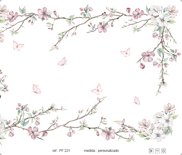 Estampa = Folhas e Flores | Folhas | Flores | Borboleta | Flor | Folha| Painel