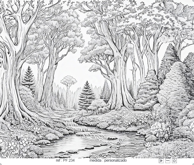 Estampa = Árvore | Floresta | Painel | Folhas | Painel | Rio