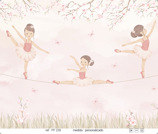 Estampa = Bailarina | Menina | Corda | Borboleta | Flor | Árvore | Grama | Pose | Laço | Tutu | Folha | Painel