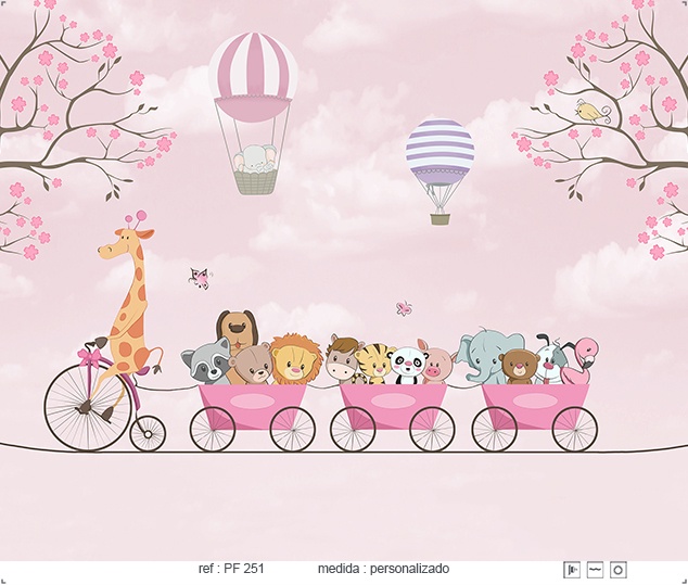 Estampa = Flor | Leão | Elefante | Girafa | Porco | Árvore | Floresta | Painel | Cachorro | Flamingo | Urso | Carrinho | Corda | Balão | Laço | Borboleta | Bicicleta