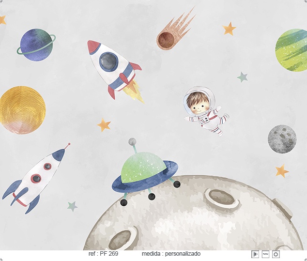 Estampa = Espaço | Ovine | Painel | Astronauta | Menino | Foguete | Estrela | Planeta | Cometa | Lua