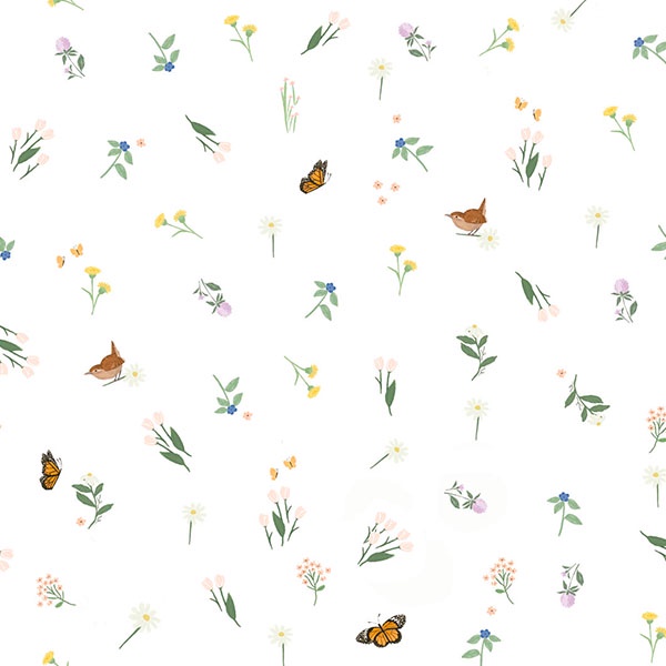 Estampa = Pássaro | Infantil | Borboleta | Flor | Folha