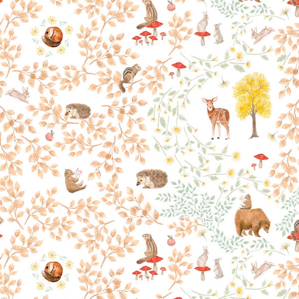 Estampa = Esquilo | Animal | Raposa | Infantil | Árvore | Flor | Folha | Cogumelo | Coelho | Veado | Urso