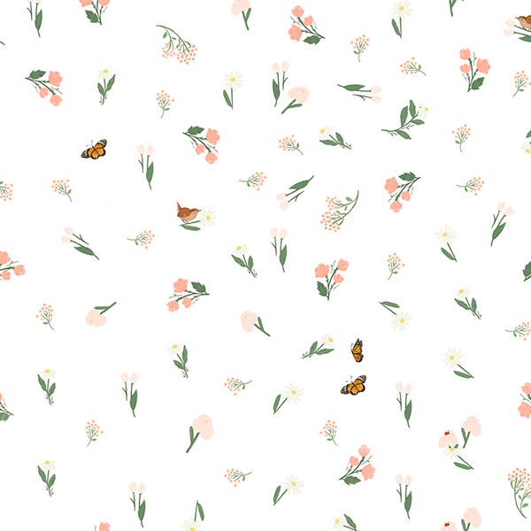 Estampa = Pássaro | Infantil | Borboleta | Flor | Folha