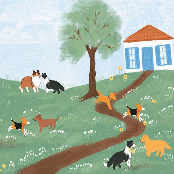 Estampa = Cachorro | Casa | Árvore | Flor | Campo | Folha