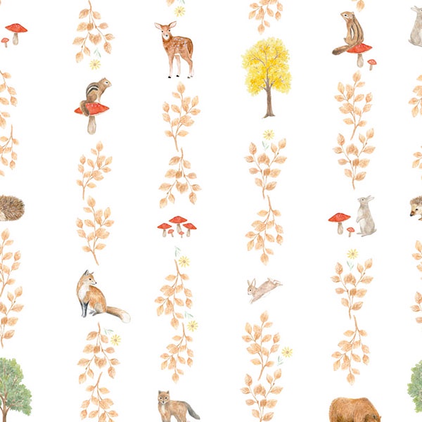 Estampa = Listras | Animal | Esquilo | Cogumelo | Infantil | Raposa | Coelho | Veado | Folha