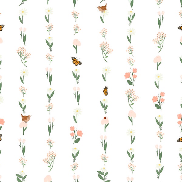 Estampa = Pássaro | Infantil | Borboleta | Flor | Folha | Listras