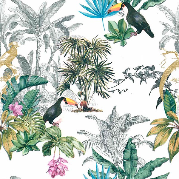 Estampa = Tucano | Animal | Pássaro | Folha | Folhas | Flor | Flores | Árvore