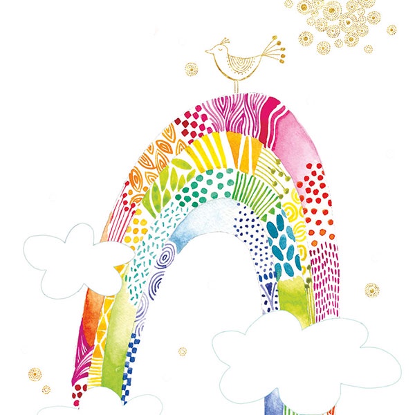 Estampa = Arco Íris | Painel | Poa | Abstrato | Pássaro | Nuvem