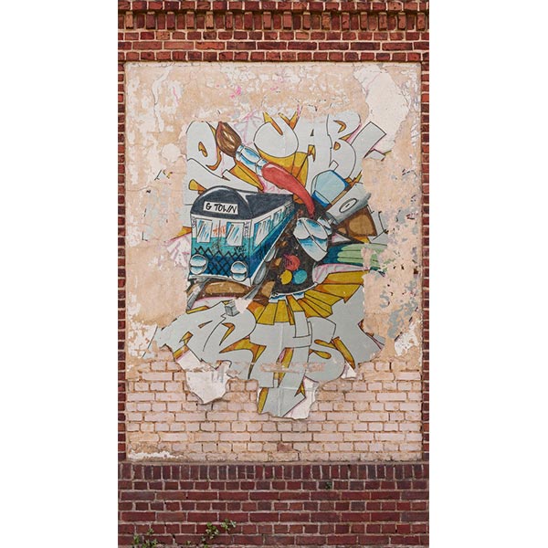Estampa = Arte | Trem | Letras | Pincel | Mural | Tijolo | Painel | Reboco | Muro