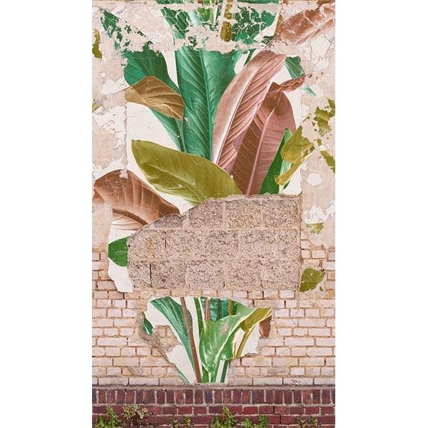 Estampa = Mural | Tijolo | Painel | Reboco | Muro | Folhas e Flores | Folhas