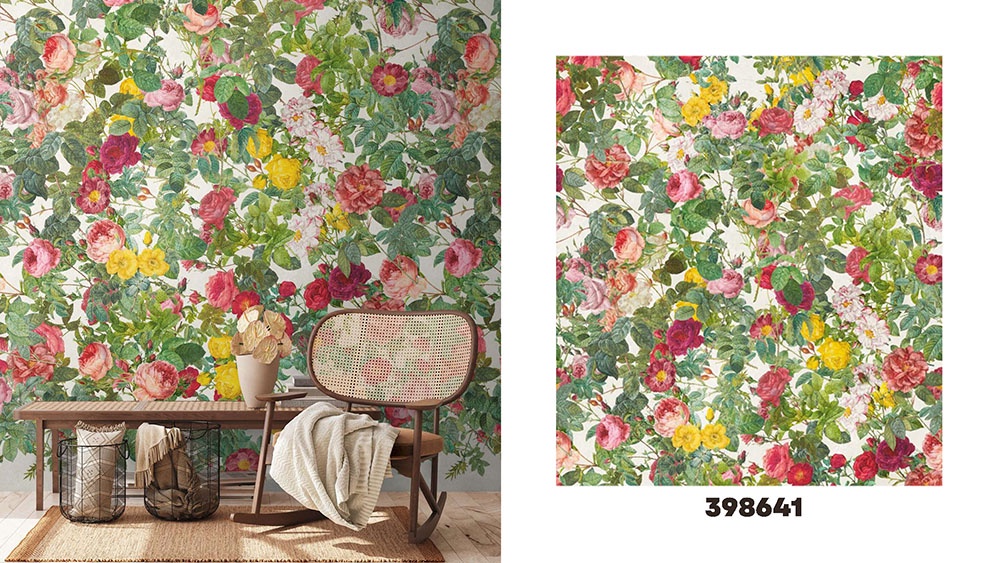Estampa = Flores | Rosas | Folhas | Trepadeiras | Jardim | Botânico | Floral | Ramos