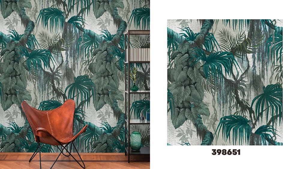 Estampa = Folhagem | Selva | Tropical | Palmeiras | Cipós | Plantas | Floresta | Natureza | Exuberante