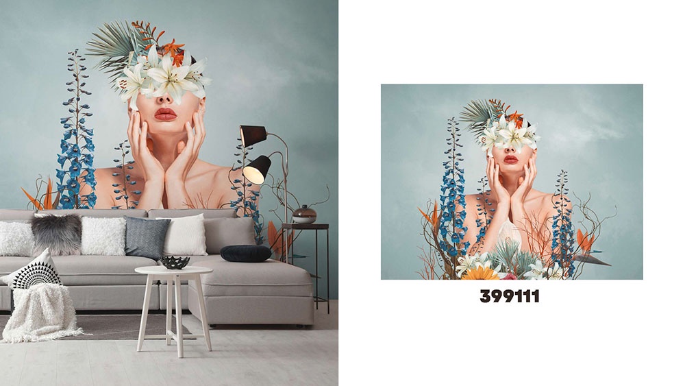 Estampa = Mulher | Rosto | Flores | Folhas | Planta | Corpo |